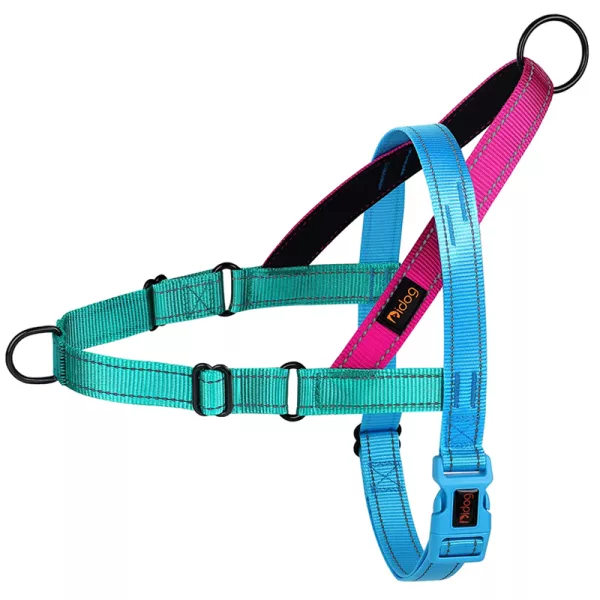 Miluji snadné zapínání. Moje starší fenka nesnášela postroje, ale tento jí vůbec nevadí. Je podpůrný a šetrný.