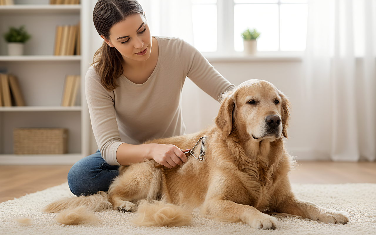 Tento kartáč byl spásou pro mého zlatého retrívra. Skutečně u něj klidně sedí, když ho používám! Srst jde ven rychle, bez tahání, a její srst je teď tak lesklá a hladká. Úklid je velmi rychlý a česání už není otrava.