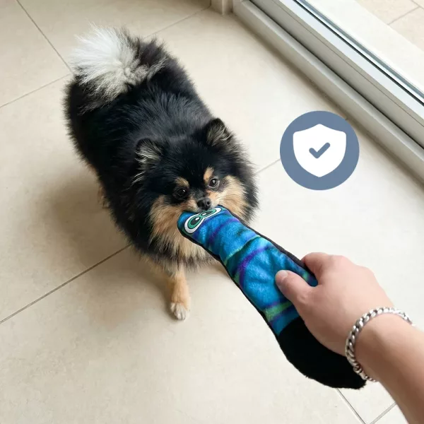 Tato hračka je pro naši fenku naprostá zábava. Tahá ji všude a měkká látka je perfektní při jejích divokých hrách. Pískání je super bonus!