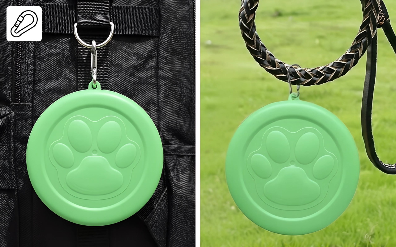 Připněte misku Primdog na vodítko nebo batoh během vteřin. Vaše ruce zůstanou volné a vše důležité budete mít po ruce.