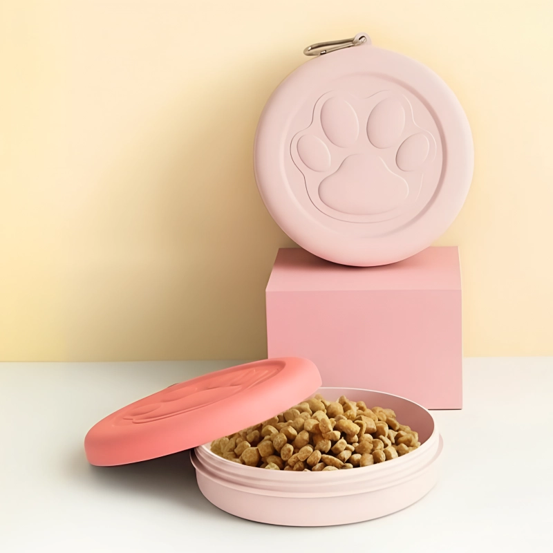 Přenosná cestovní miska na vodu a krmivo pro psy s víkem