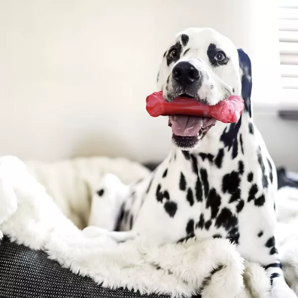Díky této kosti je pes pořád v pohybu po domě. Nadšeně ji hází a kouše. Skvěle mu to pomáhá s energií.