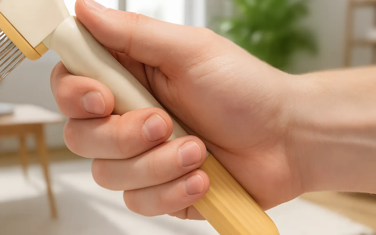 Ergonomická rukojeť zajišťuje jednoduché držení a česání neunaví vaši ruku. Užívejte si péči bez nepohodlí nebo vyklouznutí z ruky.