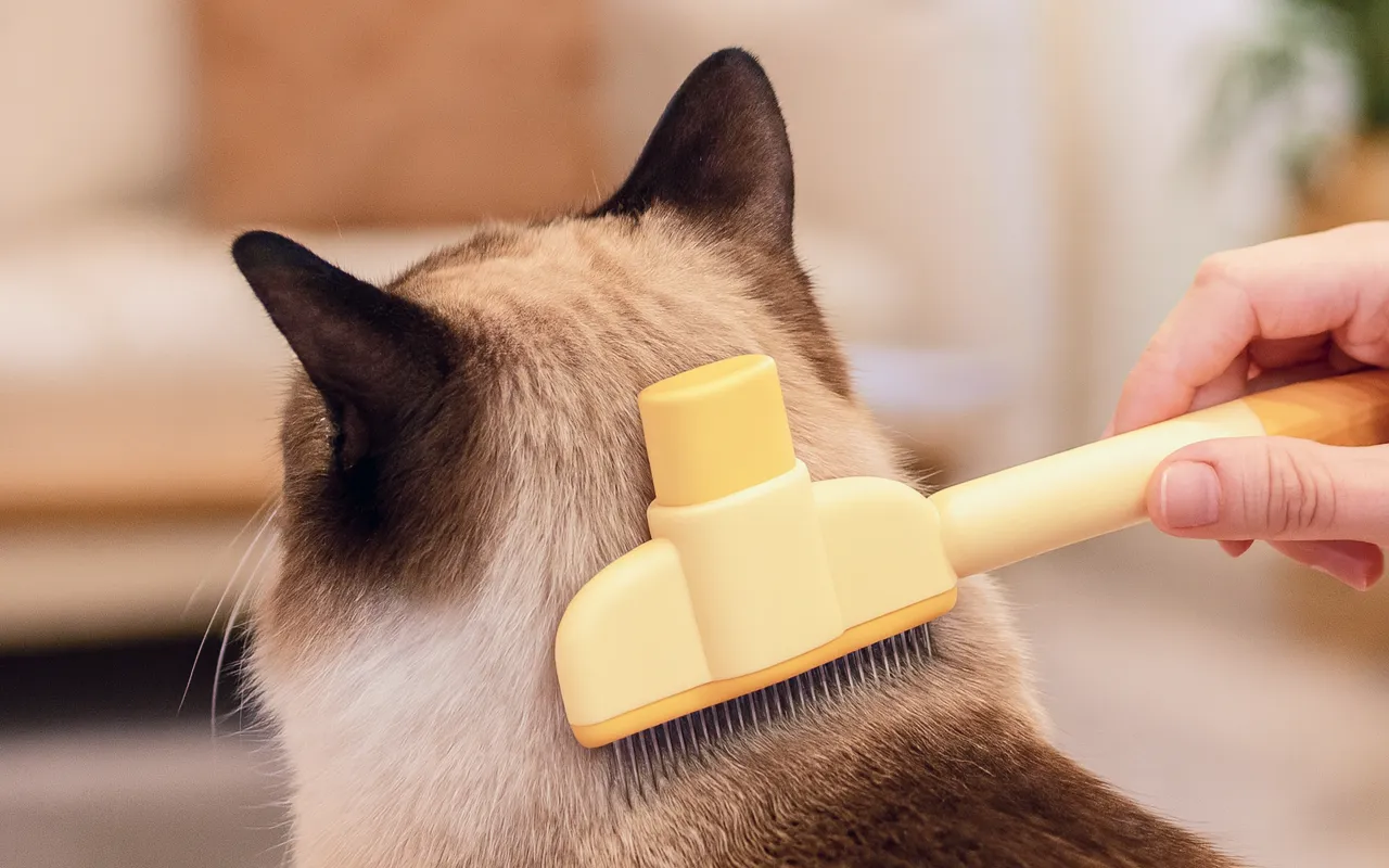 Samočistící kartáč pro odstraňování kočičích chlupů a vyčesávání srsti