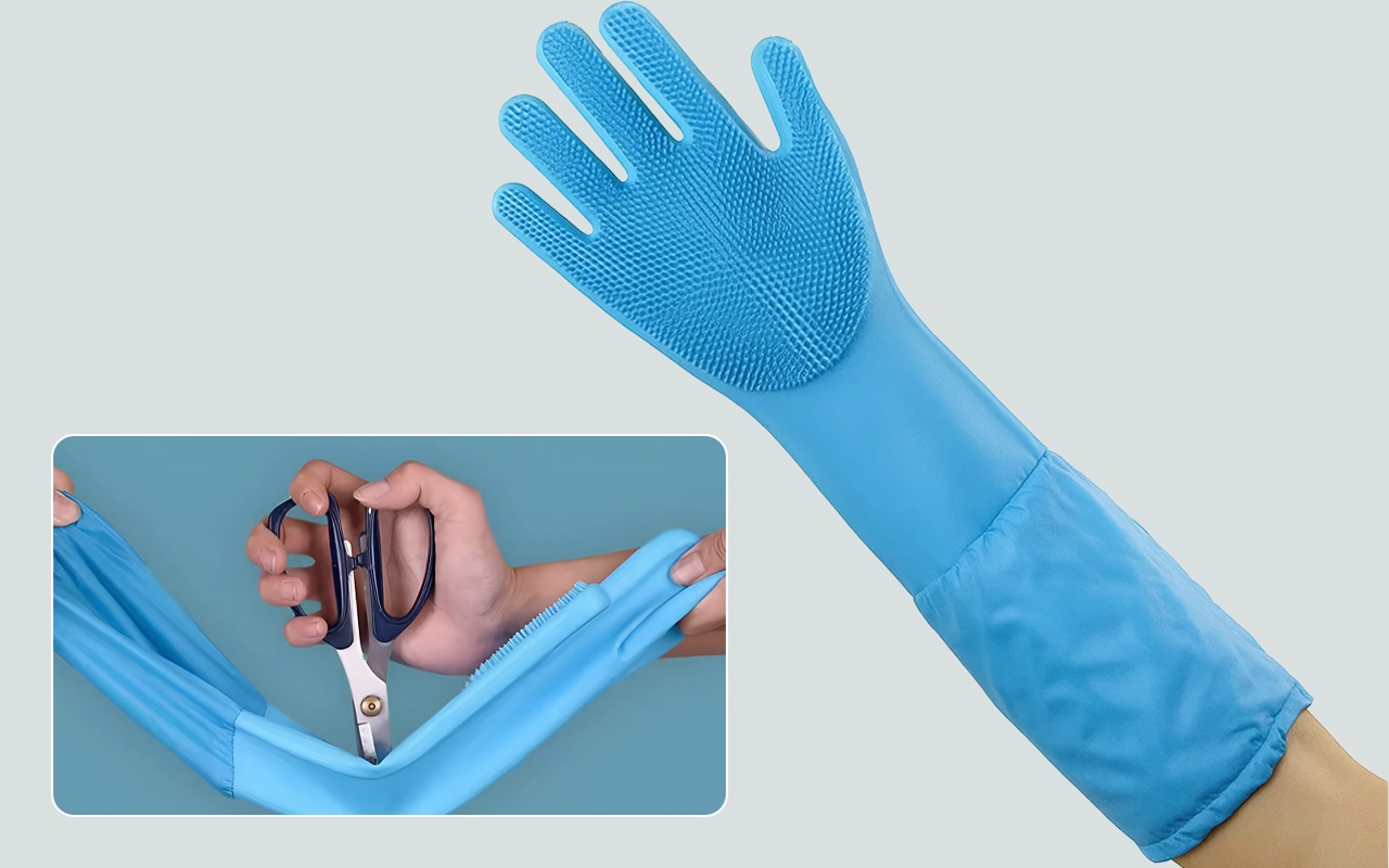 Pevný silikon udržuje pokožku suchou a chrání paže před vodou. Žádné agresivní chemikálie se při každém mytí nedostanou na vaši pokožku.