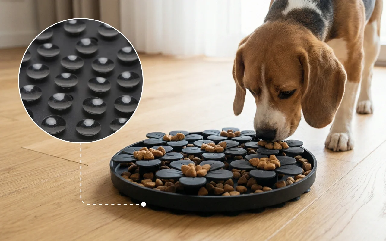 Náš pejsek dřív převracel misku při každém jídle, ale tahle podložka drží jako přilepená! Tráví víc času kousáním, což znamená méně hltání a bolavého bříška. Líbí se mi, jak je barevná a veselá.
