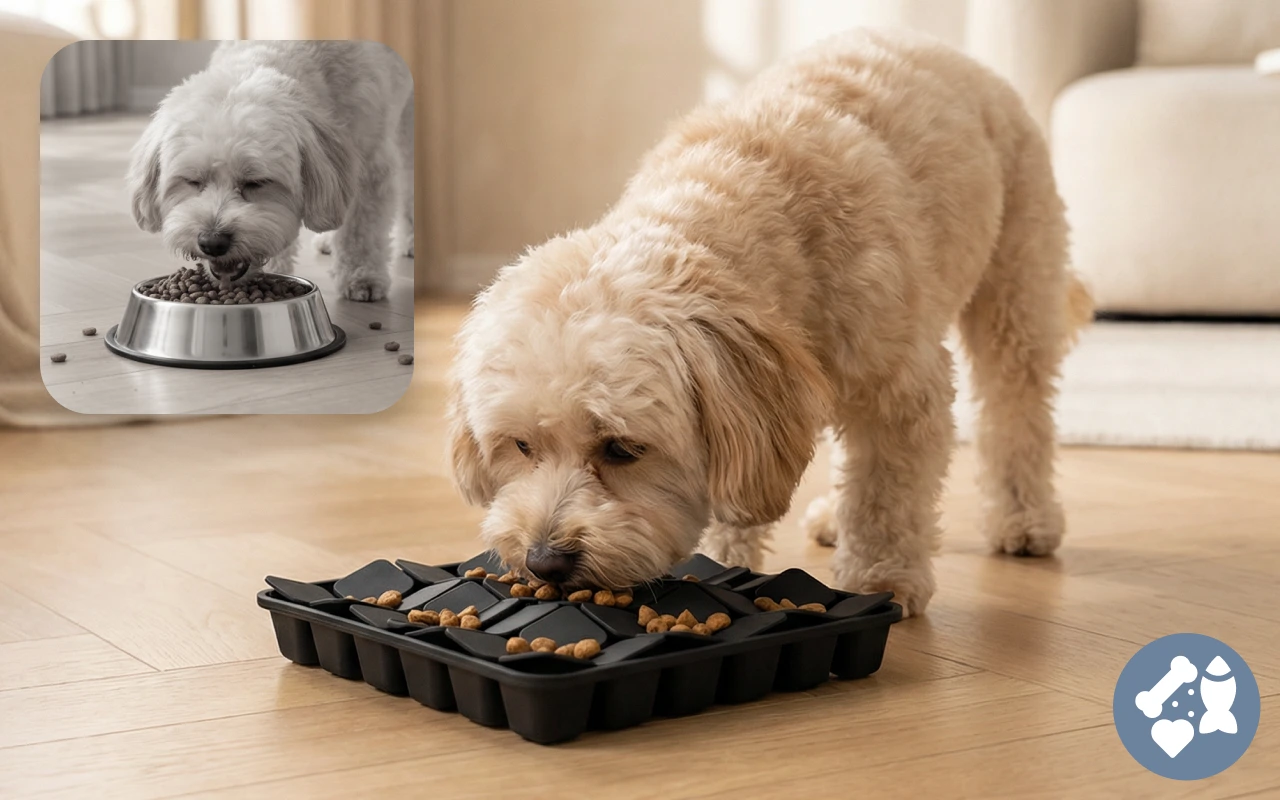 Mazlíčci berou menší sousta, což zabraňuje nebezpečnému hltání nebo nehodám. Pomalejší stravování znamená menší riziko bolestí břicha po krmení.