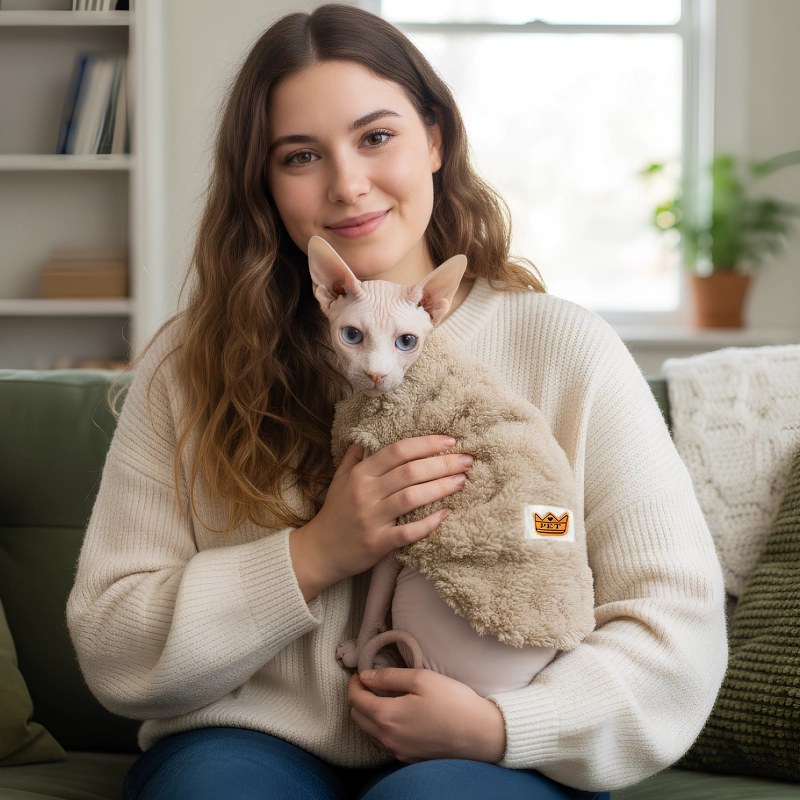 Moje kočka obvykle nesnáší oblečení, ale tento svetřík je jiný. Teď v něm dokonce spí! Vypadá roztomile a je velmi snadný na praní.
