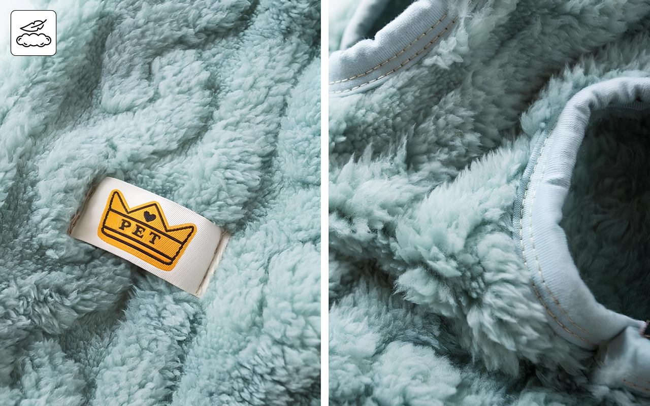 Silný fleece udržuje teplo, takže mazlíček nikdy neprochladne. Pohodlí vydrží celý den, ať už odpočíváte, nebo si spolu hrajete.