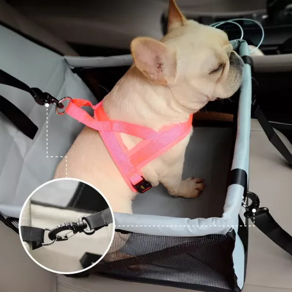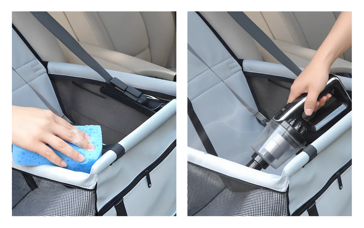 Už si nemusíte dělat starosti s nepořádnými sedadly nebo nervózními cestami. Tento chytrý design udrží vašeho mazlíčka v bezpečí a pohodlí při každé jízdě. Vyrobeno z pevných materiálů a snadno se čistí pro bezstarostné cestování. Užijte si každou jízdu s vědomím, že váš nejmenší přítel je v bezpečí po vašem boku.