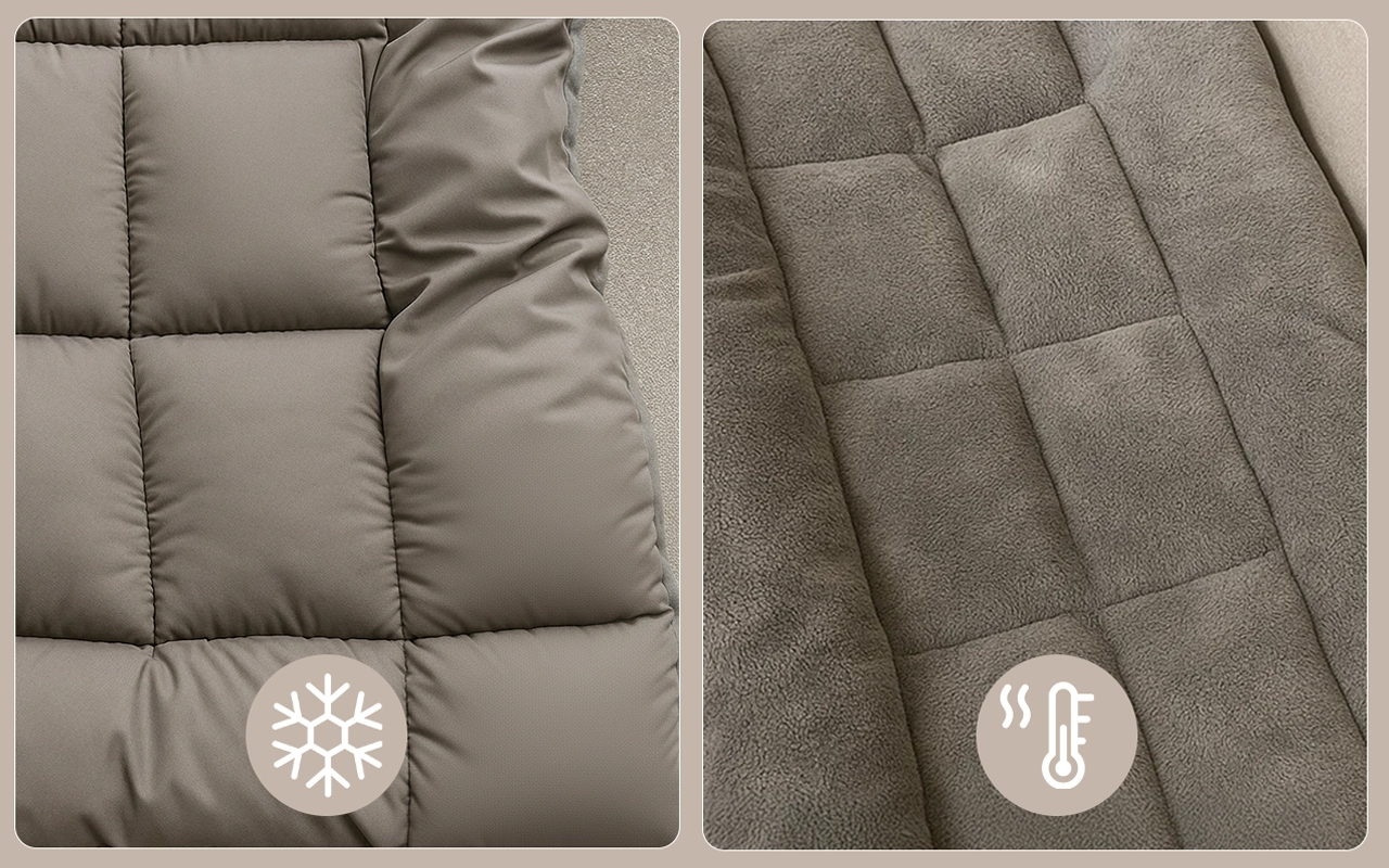 Jedna strana udržuje chlad během teplejších měsíců. Otočte ji pro útulný povrch, když doma přijde zima.