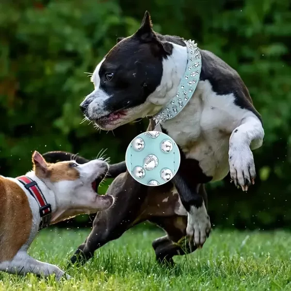 Můj buldok dostává v parku tolik pochval. Hroty mu dávají pořádný drsný vzhled. Vodítko je také pevné.