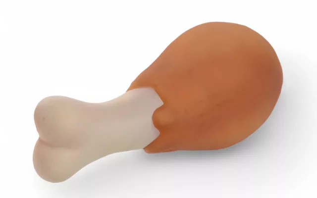 Tato pískací hračka v designu kuřecího stehna okamžitě zaujme vašeho psa.