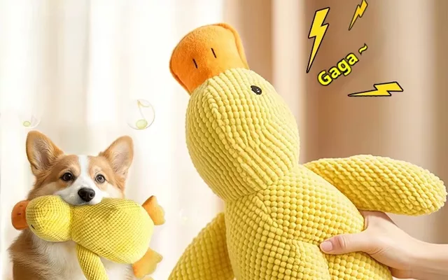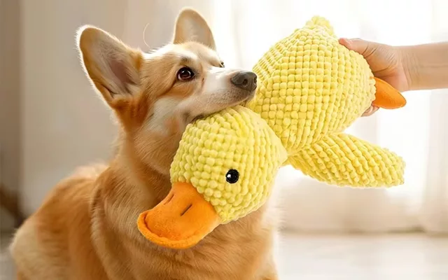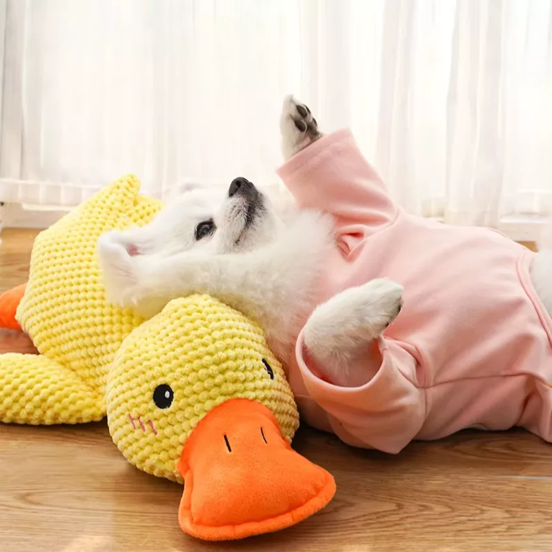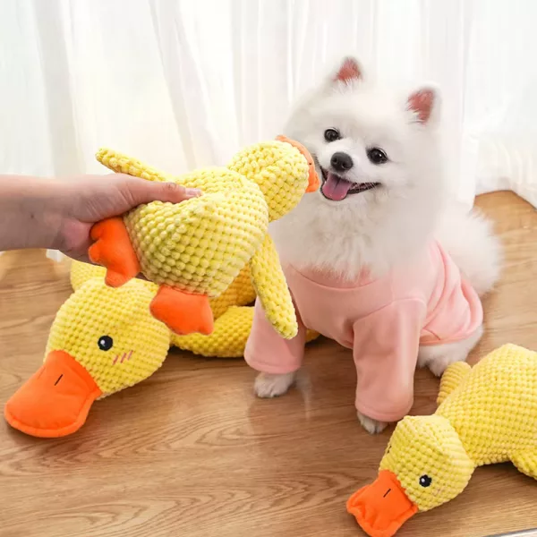 Můj pes je tak nadšený, když uslyší pískání! Kačena vydrží nekonečné hry a mám ráda, jak je na dotek měkká.