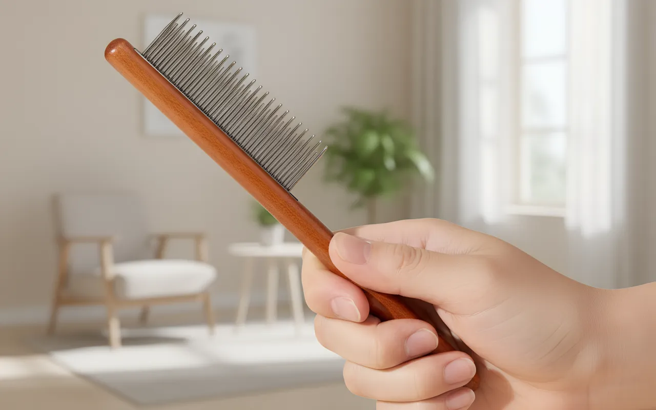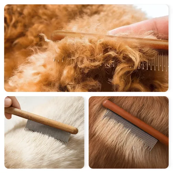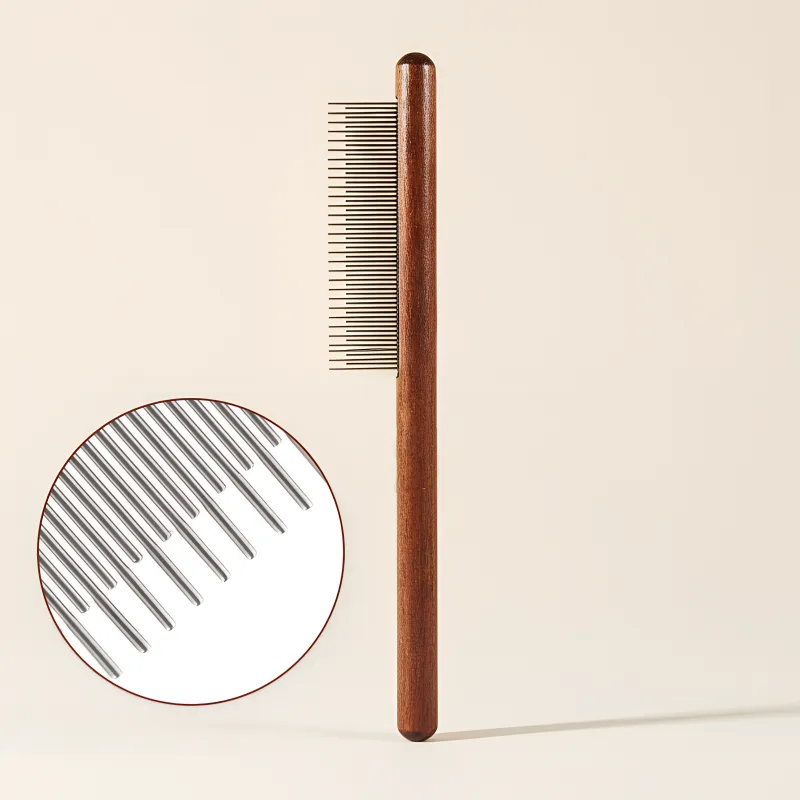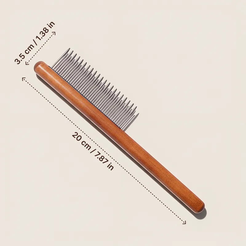 Nerezový hřeben pro kočky na blechy s dřevěnou rukojetí