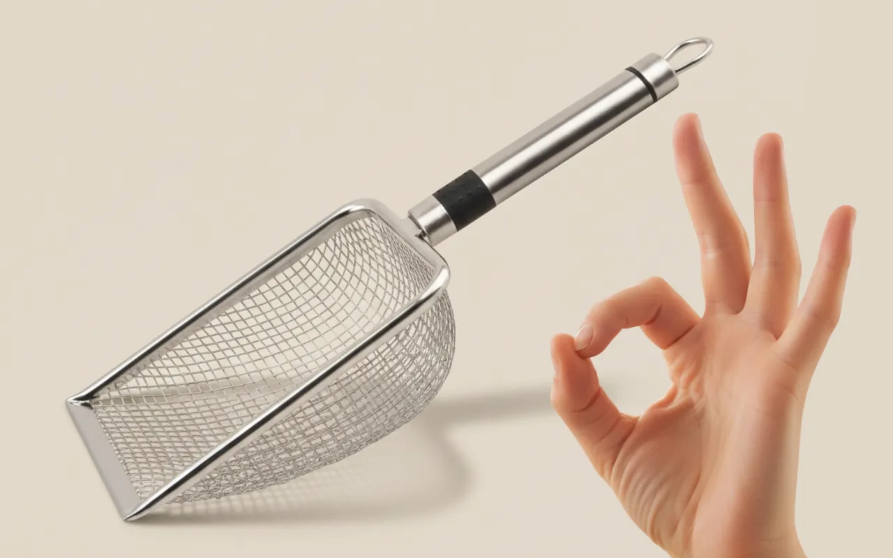 Díky ní jsou moje každodenní kočičí povinnosti naprostá pohoda. Síťka má ideální velikost, takže se prohrabává pouze znečištěné stelivo a čisté zůstává.