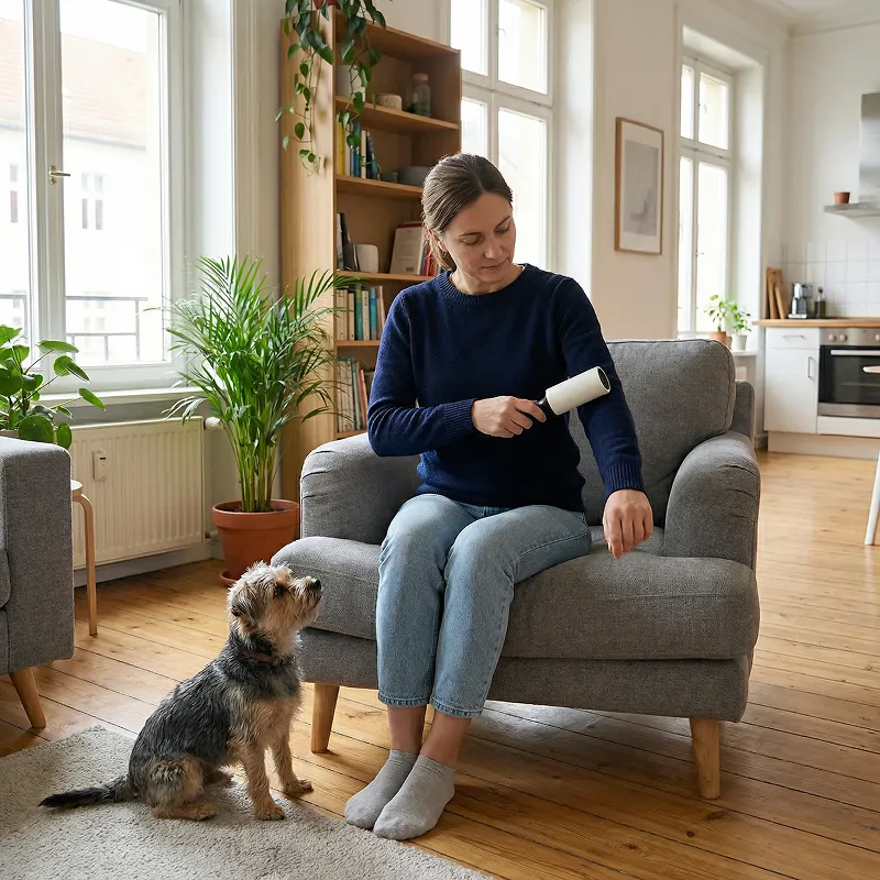 Použití tohoto lepivého válečku mi během pár minut odstranilo tolik zvířecích chlupů ze svetru a gauče. Přátelé si hned všimli, jak jsou mé oblečení zase čisté.