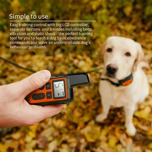 S dosahem ovládání 300–500 metrů a 3 korekčními režimy (šok, vibrace, tón) můžete plně přizpůsobit požadovaný výcvik podle vašich specifických potřeb. S 5 nastavitelnými úrovněmi vibrací a šoku můžete přesně doladit intenzitu korekce a dosáhnout pozitivních výsledků s jakýmkoli štěnětem. LCD dálkový ovladač jasně zobrazuje režim, úroveň a stav baterie. Tlačítka pro 3 odlišné režimy umožňují rychle korigovat psa při nevhodném chování, aniž byste museli koukat na zařízení.