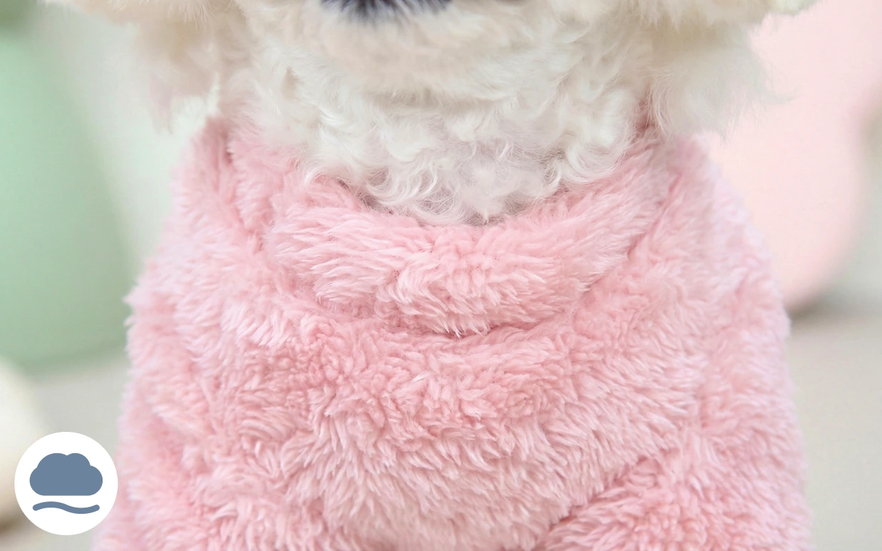 Teplý, jemný overal, který se snadno přetahuje přes tlapky.