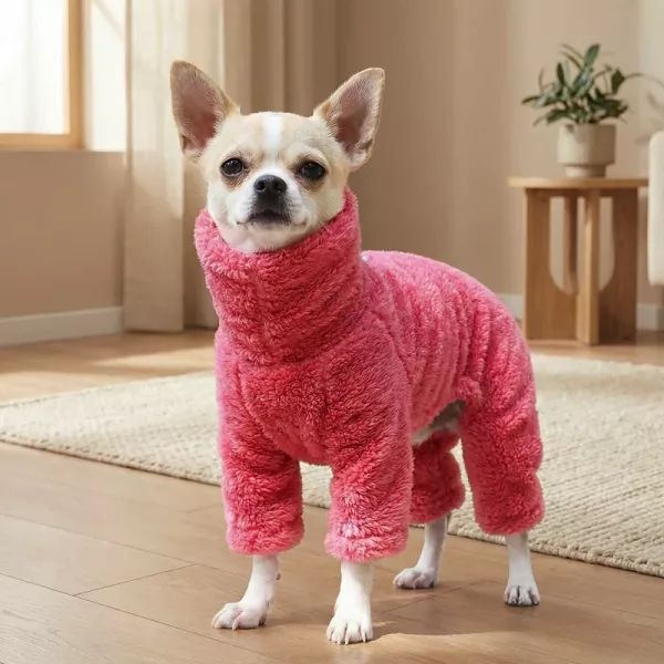 Teplý fleecový overal pro psy Roztomavé měkké pyžamo s vysokým límcem