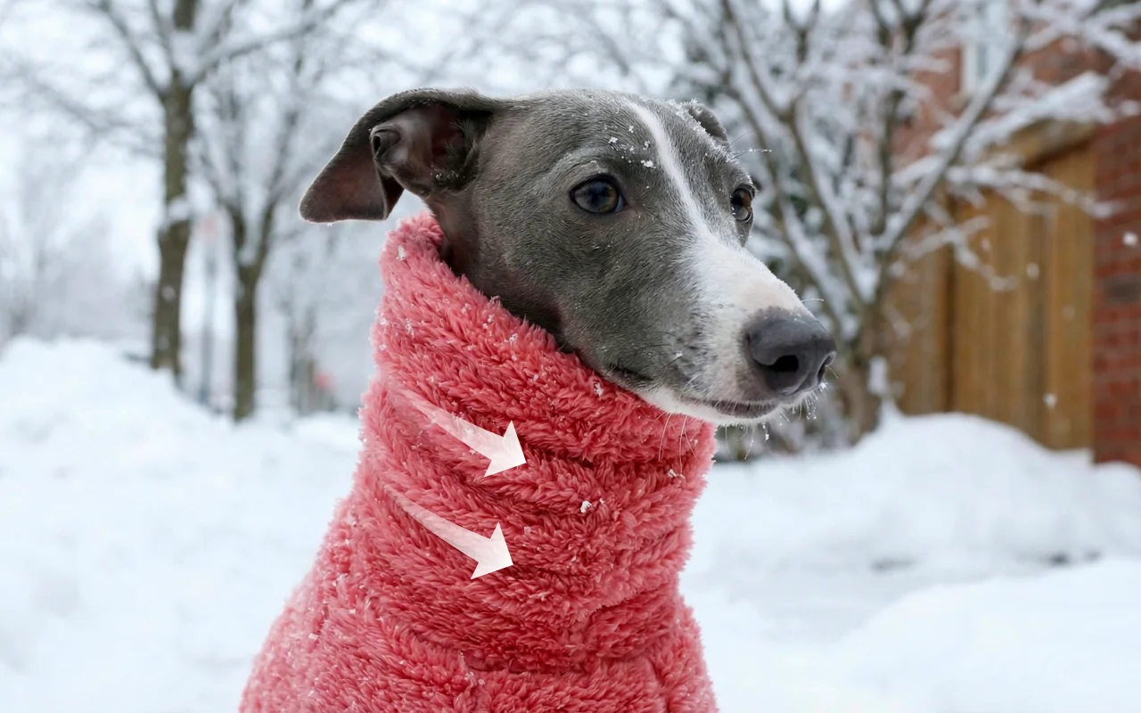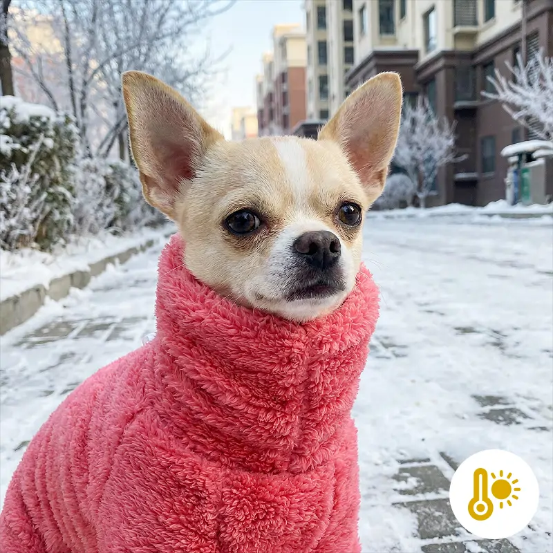 Vysoký límec chrání citlivý krk před studeným větrem. Celé tělo je chráněno a srst zůstává čistá a bez nečistot.
