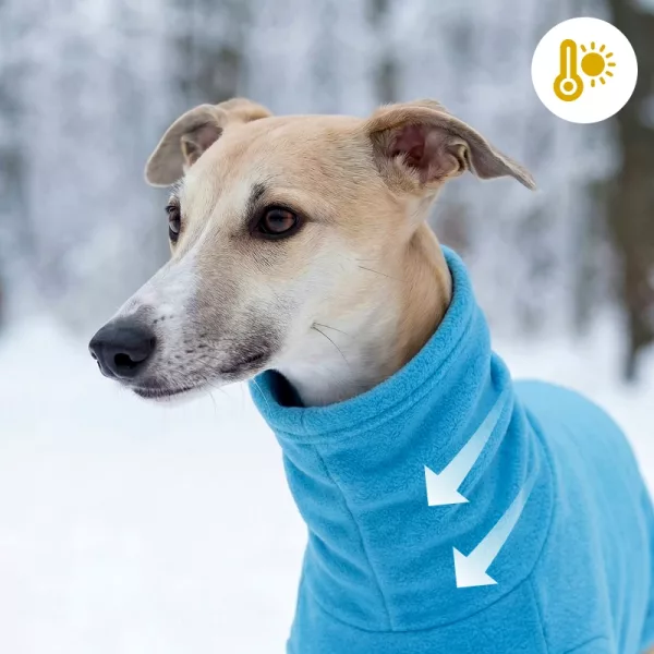 Měkký fleece chrání před ostrým větrem a nízkými teplotami. Psi zůstávají spokojení a šťastní i na dlouhých procházkách venku.