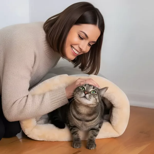Teplý plyšový pelíšek pro kočky, roztomilý uzavřený vak