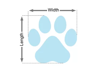 - Označte nejširší a nejdelší část tlapky a poté tyto vzdálenosti změřte pravítkem.