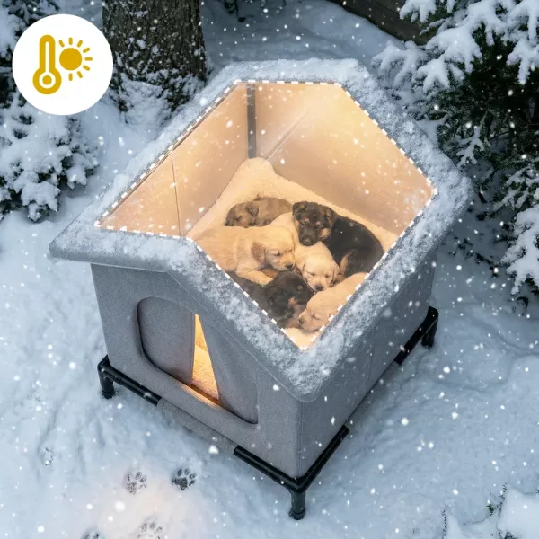 Izolované stěny zachycují teplo pro odpočinek během chladných dnů. Mazlíčci si užívají klid v prostorách s regulovanou teplotou po celou sezónu.