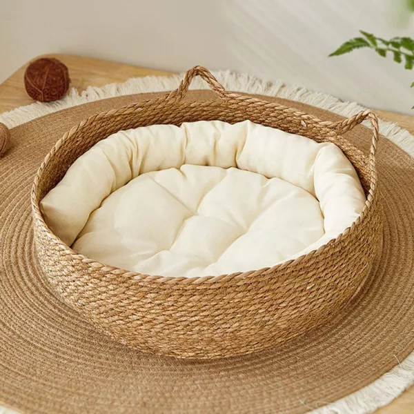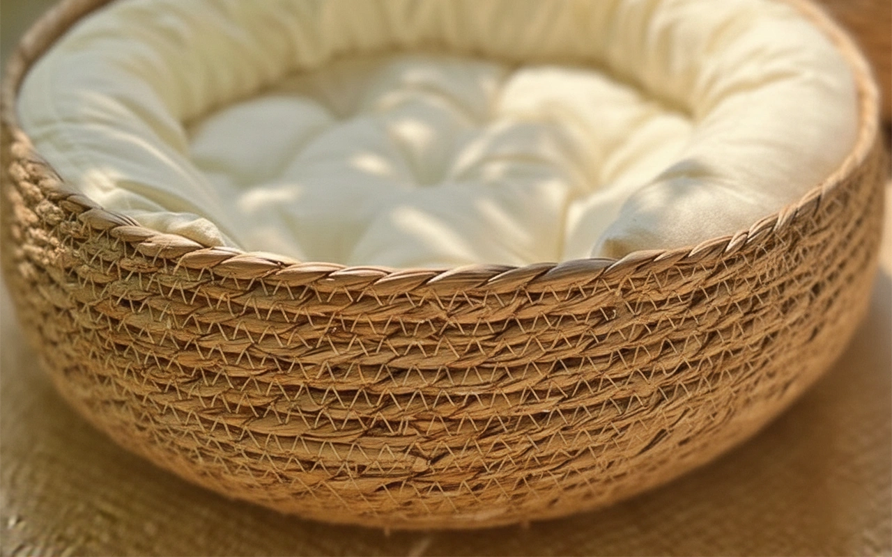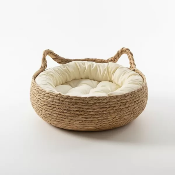 Proutěný kočičí pelíšek s bavlněným polštářem