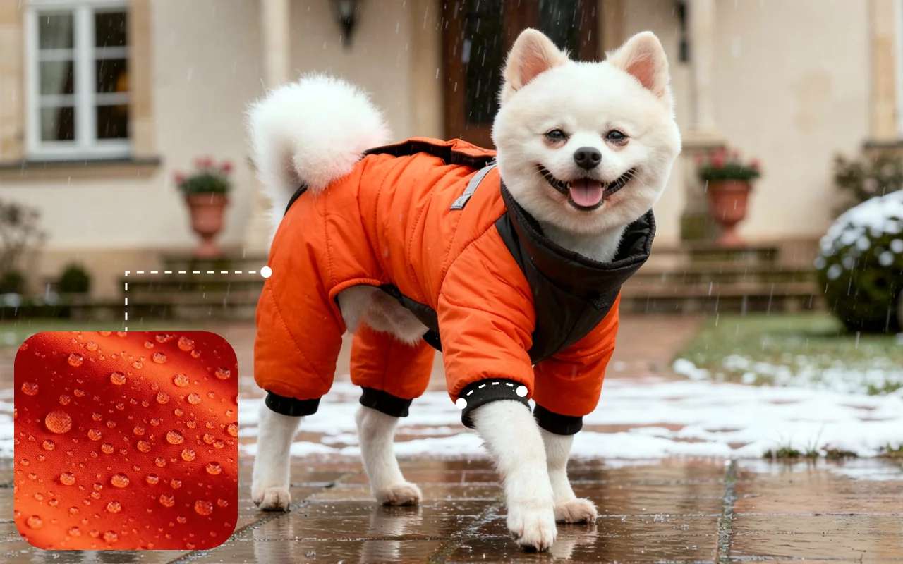 Nepropustná látka udrží srst suchou i v dešti. Větruodolné manžety zabraňují prostupu chladu, takže dobrodružství nikdy nekončí.