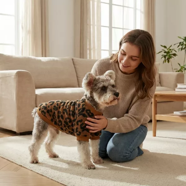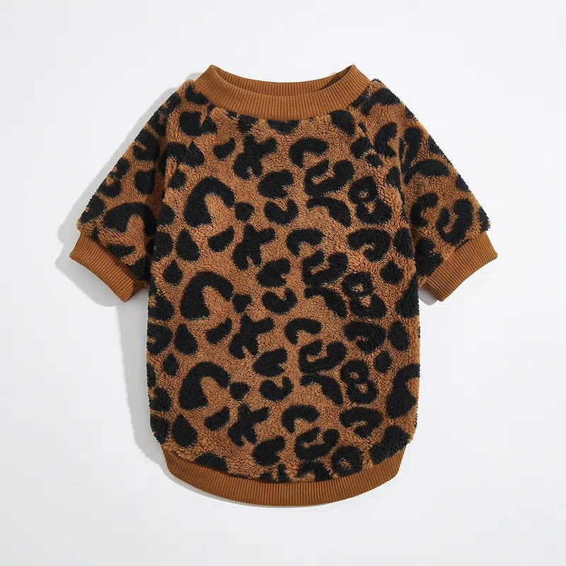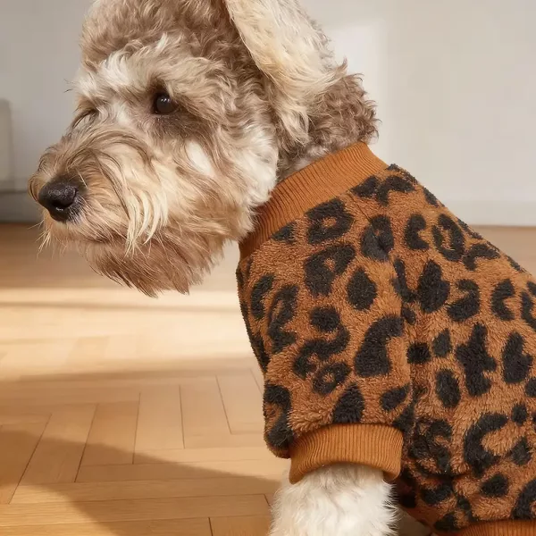 14 recenzí Zimní zateplený svetr pro psy s kulatým výstřihem Roztomilý leopardí pulovr