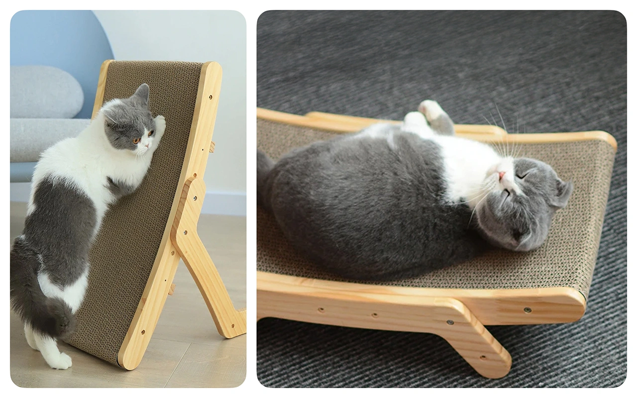 Různé úhly podporují protahování, odpočinek i posilování svalů. Každá kočka si najde svou oblíbenou polohu na odpočinek nebo hraní.