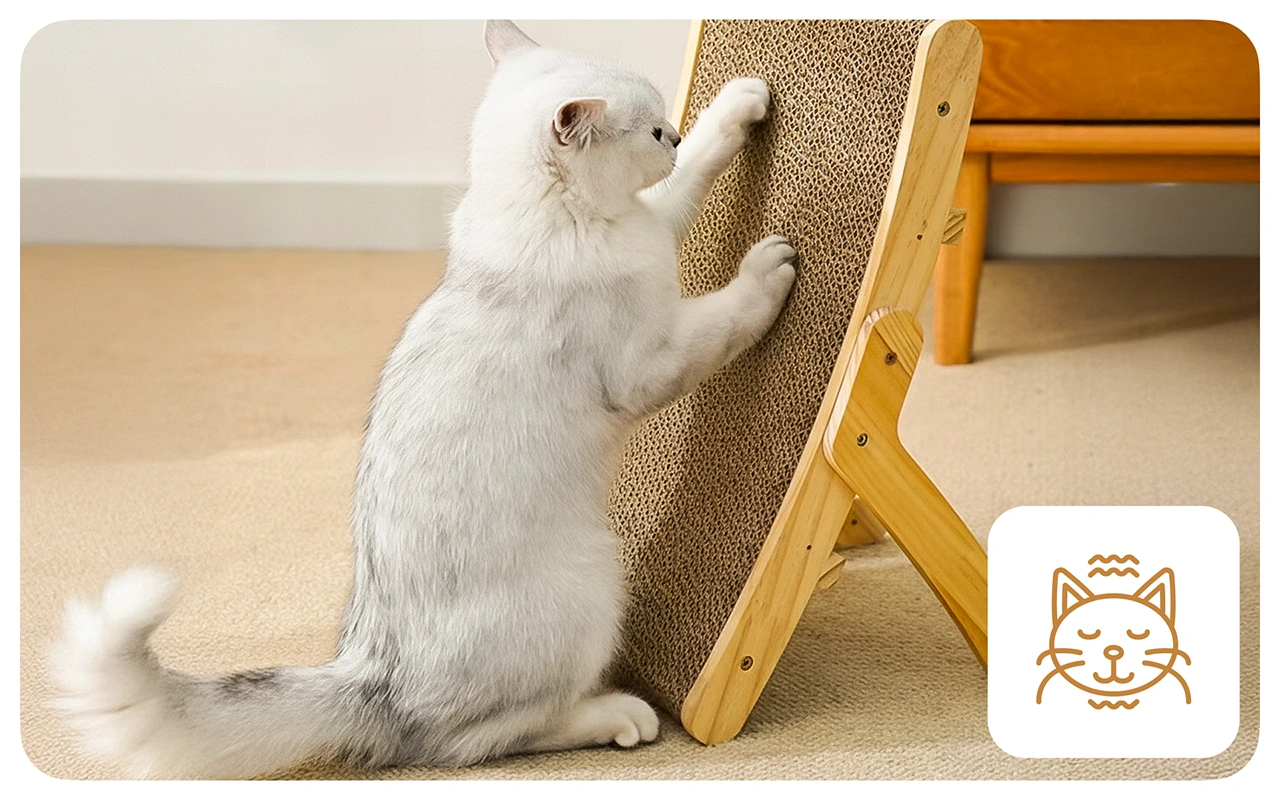 Texturovaný povrch podporuje přirozené broušení drápků a pohyb. Úleva od stresu roste, zatímco ničivé návyky rychle mizí.